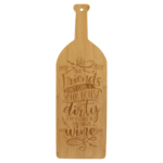 This wine bottle-shaped bamboo cutting board is the perfect size for use as a charcuterie board, kitchen décor, or even as wall or countertop signage. Personalized with your choice of graphics, it makes a stylish and functional gift, promotional item, or incentive. Ideal for gift shops, souvenir stores, and fundraisers! A hole in the handle allows for easy hanging, or you can display it on an easel for countertop presentation.